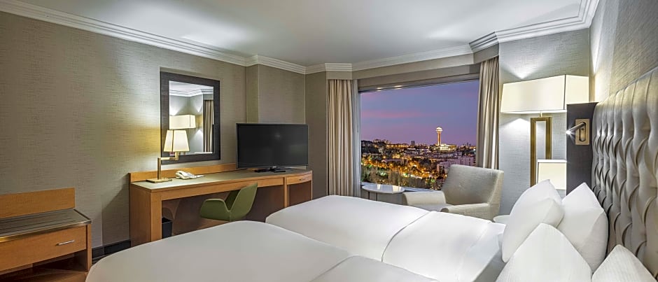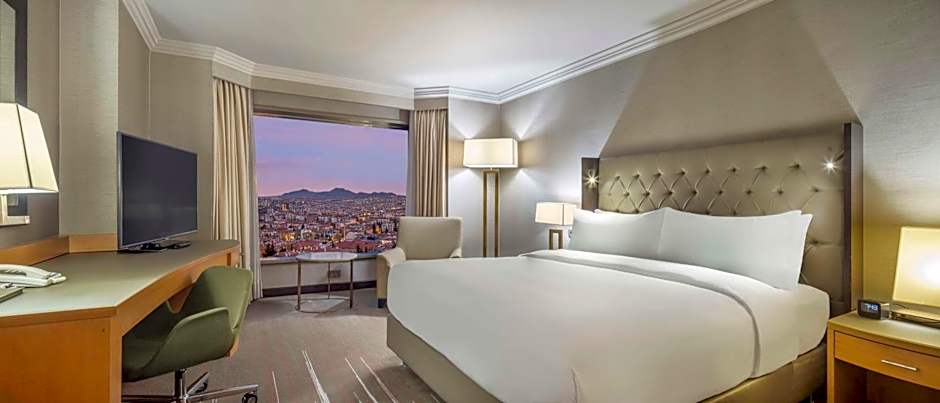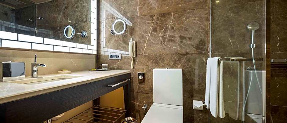 Recently renovated, this suite offers panoramic views of Ankara through large windows, free WiFi, separate living, working areas and an HDTV with 120 multinational channels and on-demand movies. The elegant bathroom features marble counter tops and rain shower. Special touches include fluffy bathrobes.